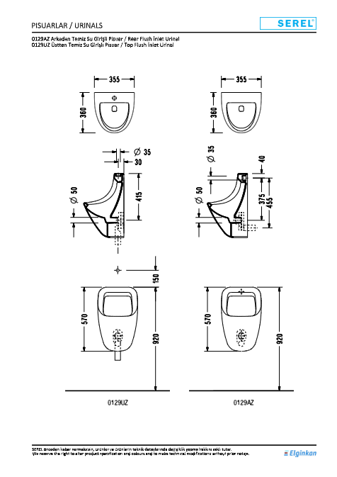 Arkadan Temiz Su Girişli Pisuar