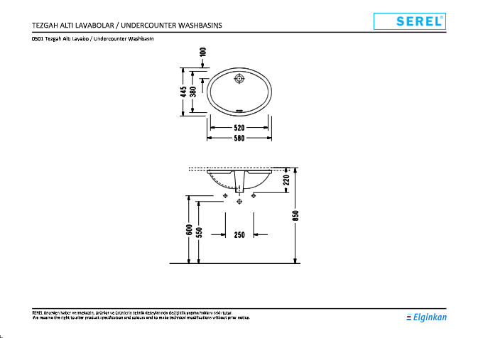 E.C.A.-SEREL 0501 Tezgah Altı Lavabo