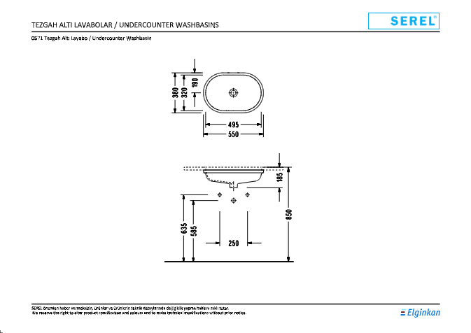 E.C.A.-SEREL 0571 Tezgah Altı Lavabo