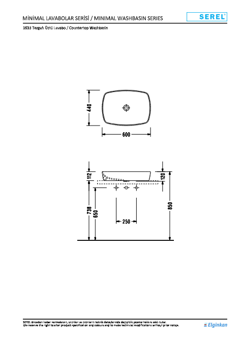 E.C.A.-SEREL 1633 Tezgah Üstü Lavabo