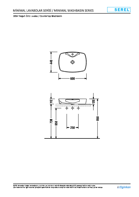 E.C.A.-SEREL 1634 Tezgah Üstü Lavabo