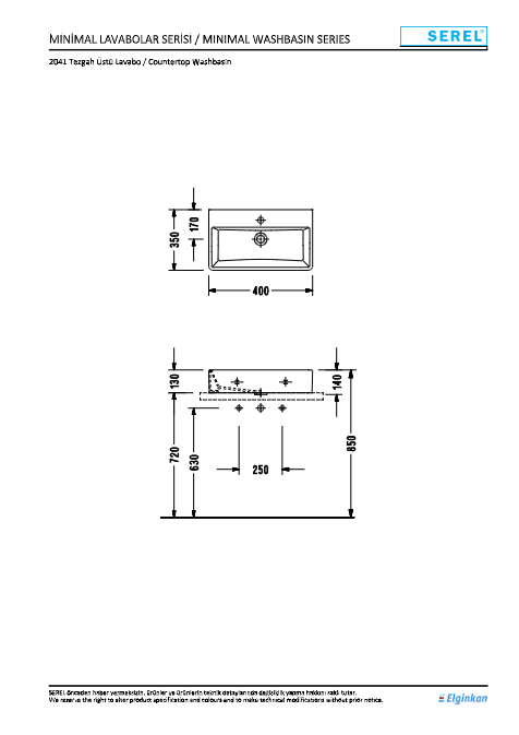 E.C.A.-SEREL 2041 Tezgah Üstü Lavabo