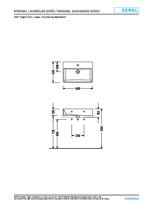 E.C.A.-SEREL 2047 Tezgah Üstü Lavabo