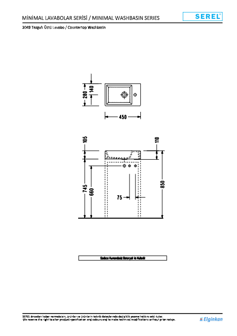 E.C.A.-SEREL 2049 Tezgah Üstü Lavabo