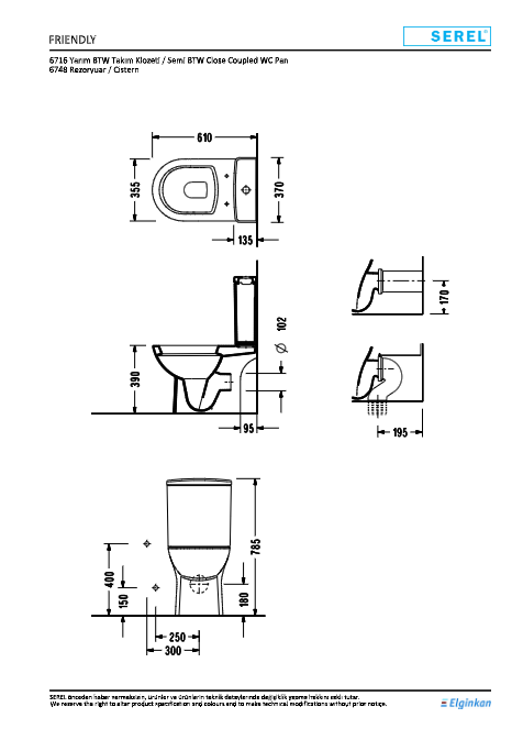 E.C.A.-SEREL 6716 Friendly Yarım BTW Takım Klozeti 61cm