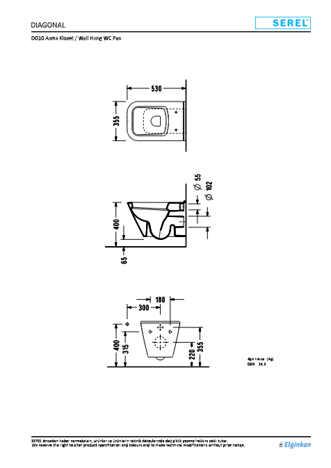 E.C.A.-SEREL DG10 Diagonal Asma Klozet 53cm