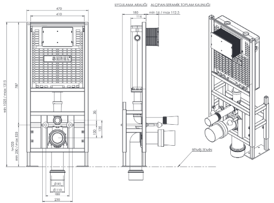 * 18 cm. kalınlık. Universal pis su çıkışı.