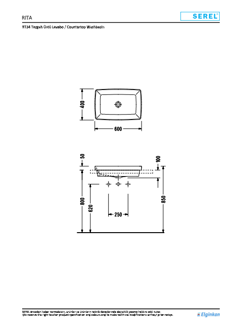 E.C.A.-SEREL RT34 Rita Tezgah Üstü