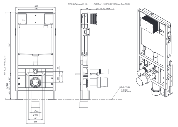 * 12 cm kalınlık. Dik pis su çıkışı.