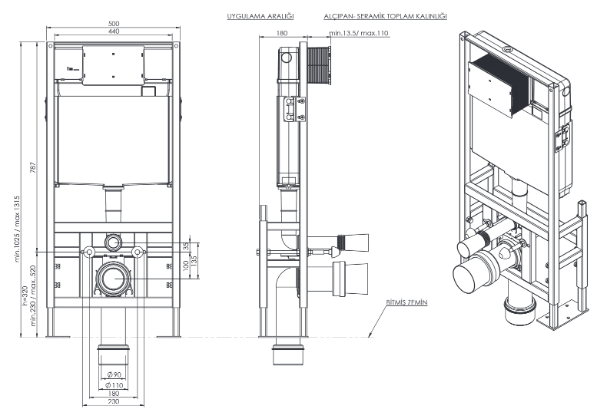 * 18 cm. kalınlık. Universal pis su çıkışı