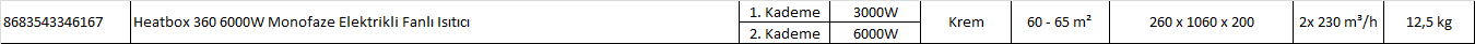 Heatbox 360 derece dönebilir krem renk monofaze fanlı elektrikli ısıtıcı 3000-6000 watt