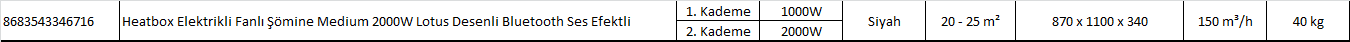 HBL2000LT Heatbox Elektirikli Fanlı Şömine 2000 wat (126x34x87) Bluetooth Ses Efektli