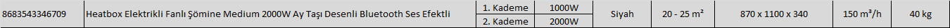 HBM2000AY Heatbox Elektrikli Fanlı Şömine 2000 wat (110x34x87) Bluetooth Ses Efektli
