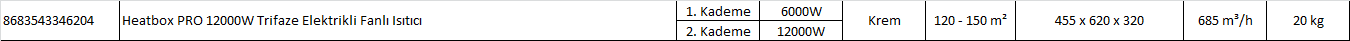 Heatbox pro ısıtıcı krem renk 12 kw trifaze fanlı ısıtıcı 6000/12000 watt