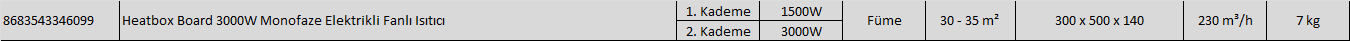 Heatbox board füme renk monofaze fanlı elektrikli ısıtıcı 1500/3000 watt