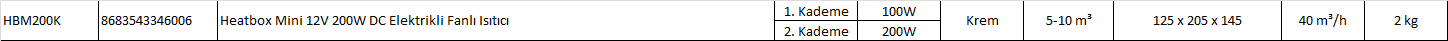 Heatbox Mini 12V 100W - 200W Krem Fanlı Isıtıcı