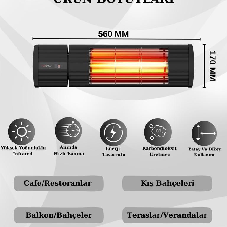 | Fonksiyonlar Ve Donanım | Tungsten✓ Taşıma kolu (kolları) Askı aparatı✓ Çalışma kontrol lambası✓ Devrilme emniyeti- Isıtma kademesi sayısı✓ Direkt kızılötesi ısı sayesinde anında ısıtma✓ IR Lamba Infrared quartz halojen ısıtıcı lamba✓ Toz girdabı oluşturmaz (alerjisi olanlar için uygundur) ✓ Kokusuz ve sessiz çalışma ✓ |