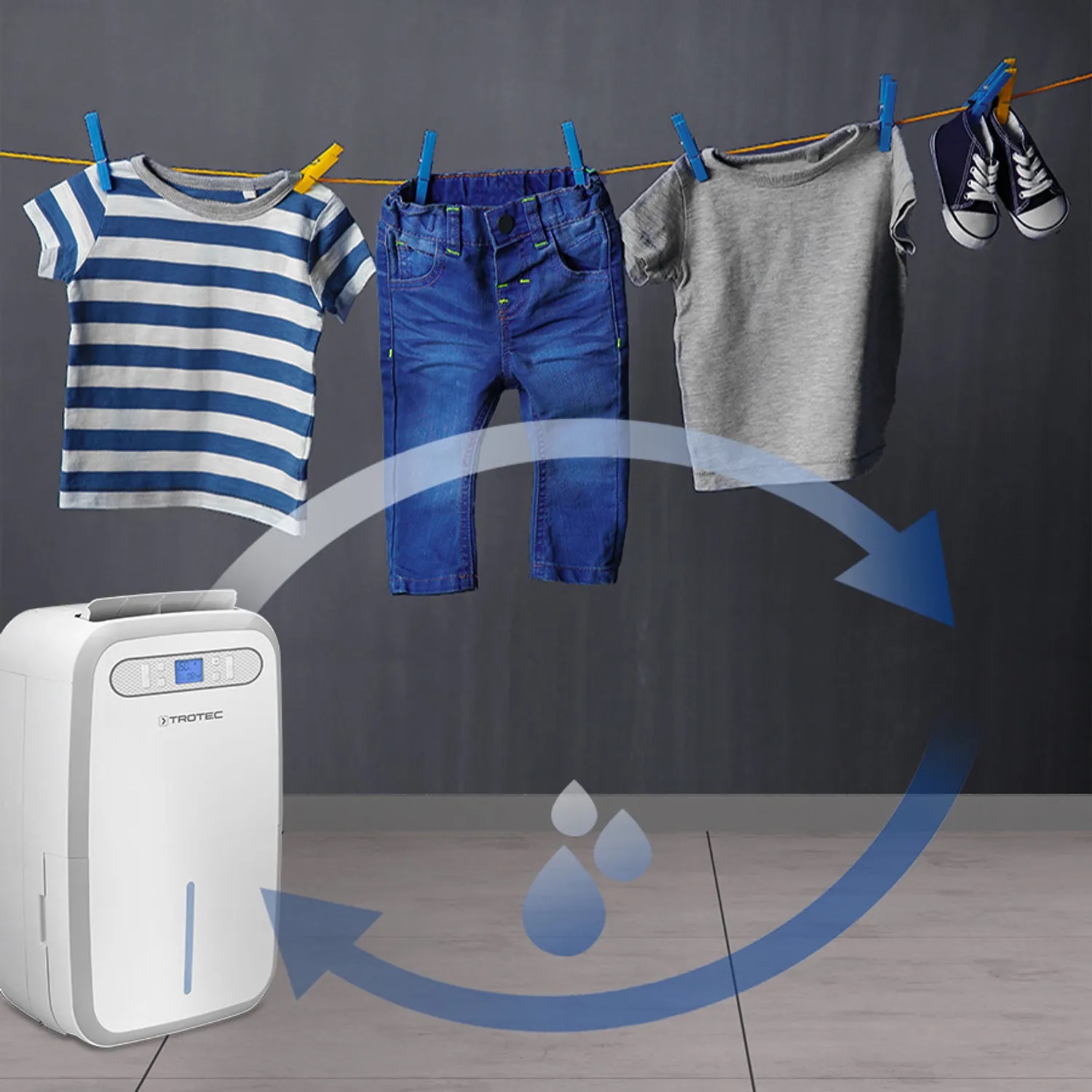 Timer fonksiyonu, aşırı taşmaya karşı otomatik kapanma ve su haznesi dolduğunda uyarı lambası TTK 95 E nem alma cihazının donatımlarına dahildir. Entegre yıkanabilir hava filtresi, toz ve hayvan tüylerine karşı temizleme uygulaması ile özel bir hijyen sağlanır. Uzun süreli kullanımlar için nem alma cihazı TTK 95 E harici yoğuşma bağlantısına sahiptir.